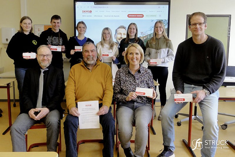 Ein herzliches „Dankeschön“ gilt ebenfalls den 21 Schüler*innen und 2 Struck Mitarbeitern, die sich als potentielle Stammzellenspender*innen registrieren ließen, umso in aller Welt Menschen mit der Diagnose Blutkrebs eine Überlebenschance zu geben.