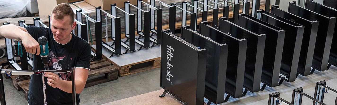Große Markenauftritte werden oft international ausgerollt. So kommt es beispielsweise vor, dass wir innerhalb von 2 Monaten über 15.000 Leuchtdisplays produzieren und in kürzester Zeit montieren. Auch die Lichtwerbung für Filialen großer Versicherungen und Lotteriegesellschaften bewegt sich im höheren Auflagenbereich. Auf über 13.000 m² Produktionsfläche sind wir dafür bestens gerüstet. Modernste Technik wie z. B. teilautomatisierte Siebdruckstraßen und die enorme Fertigungstiefe ermöglichen uns sehr effiziente Arbeitsabläufe.