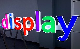 Durch das Einlegen spezieller LEDs deren Licht vom Glaskörper des Acrylbuchstabens reflektiert wird, entsteht eine besonders gleichmäßigere Ausleuchtung der LED-Buchstaben.